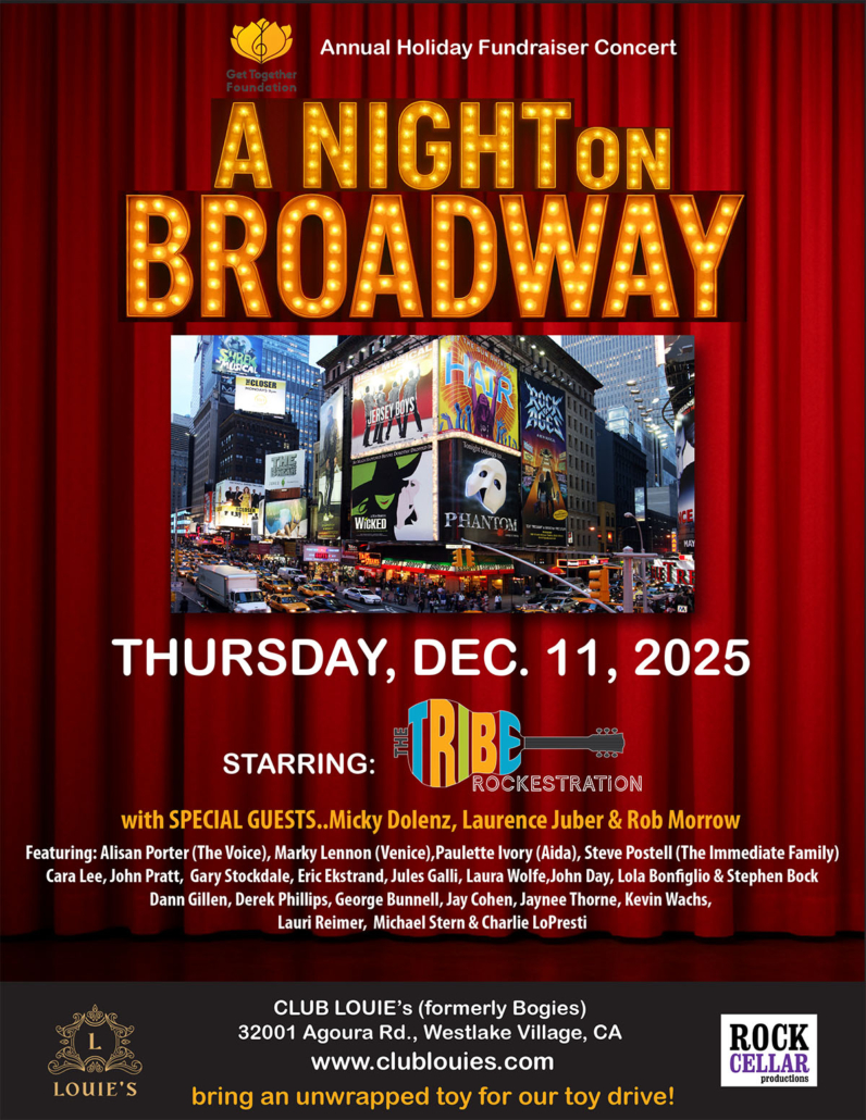 The Tribe has the best singers in LA joining an incredible band, and a taste of orchestral influence! Come experience some of the greatest musical moments of the Broadway stage. Proceeds will support the Get Together Foundation